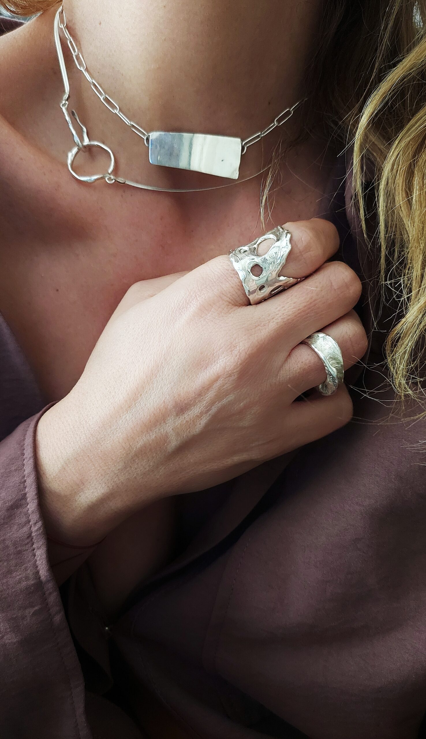 Large statement silver ring, open and adjustable so you don’t have to worry about your size.